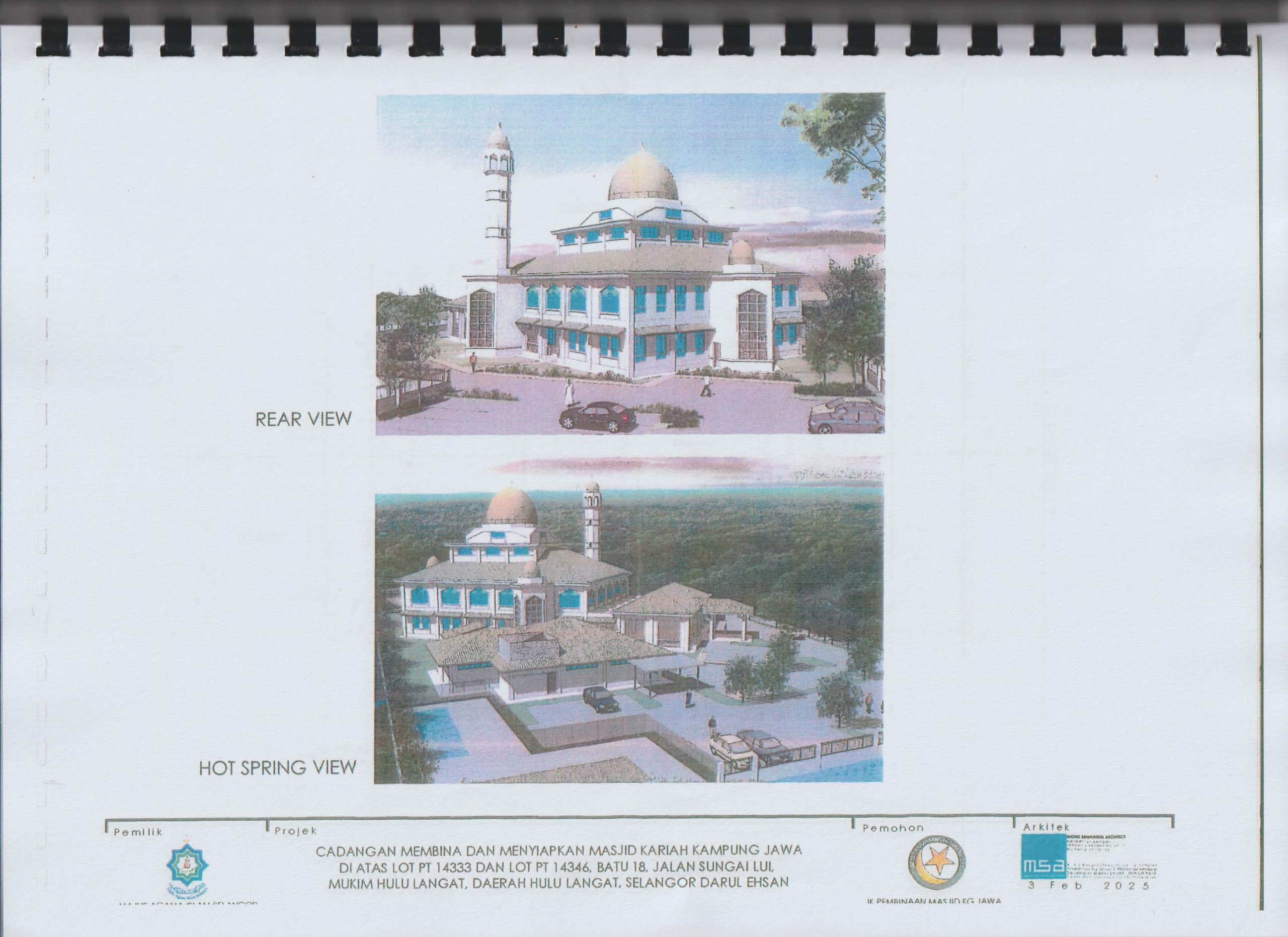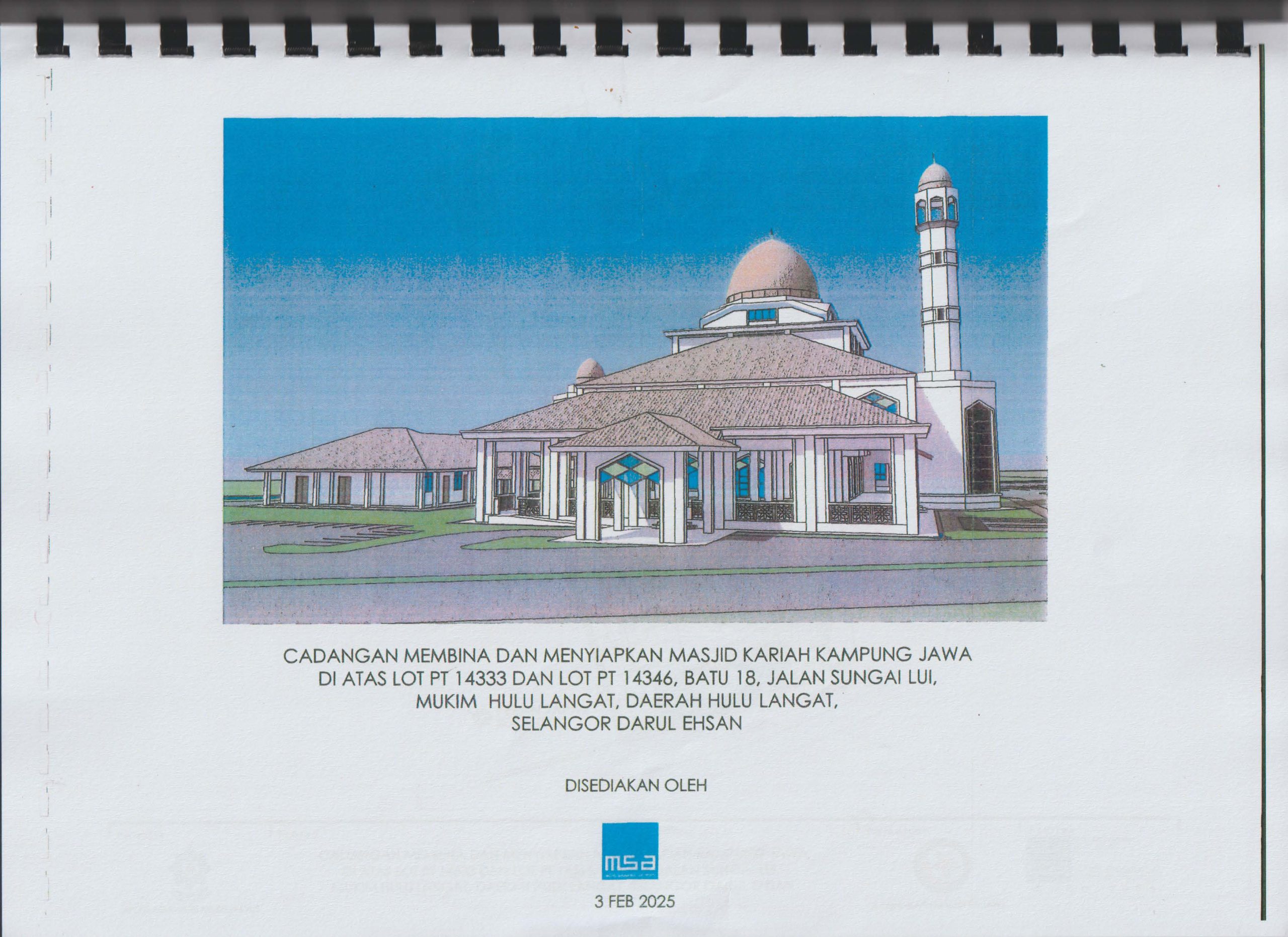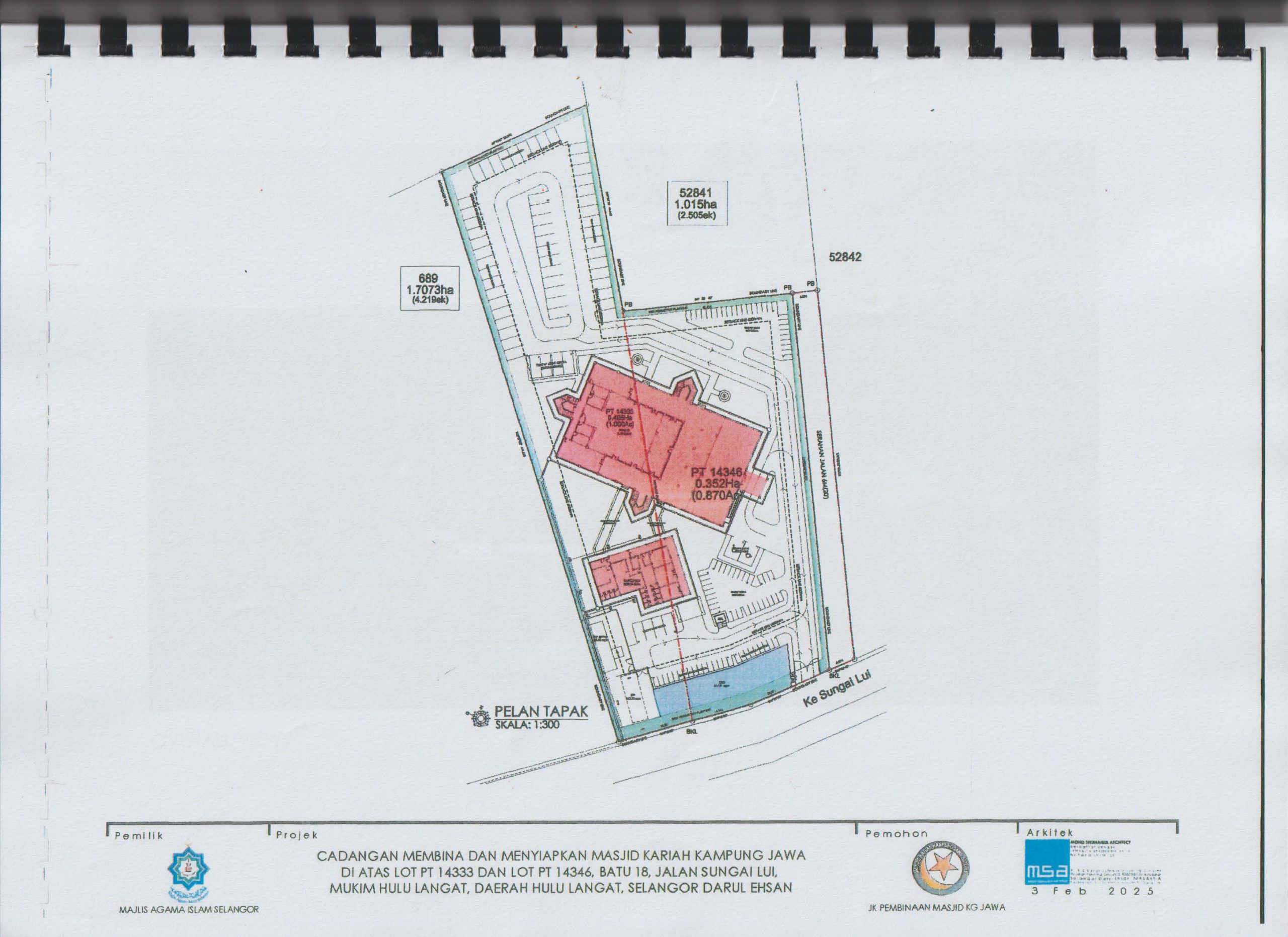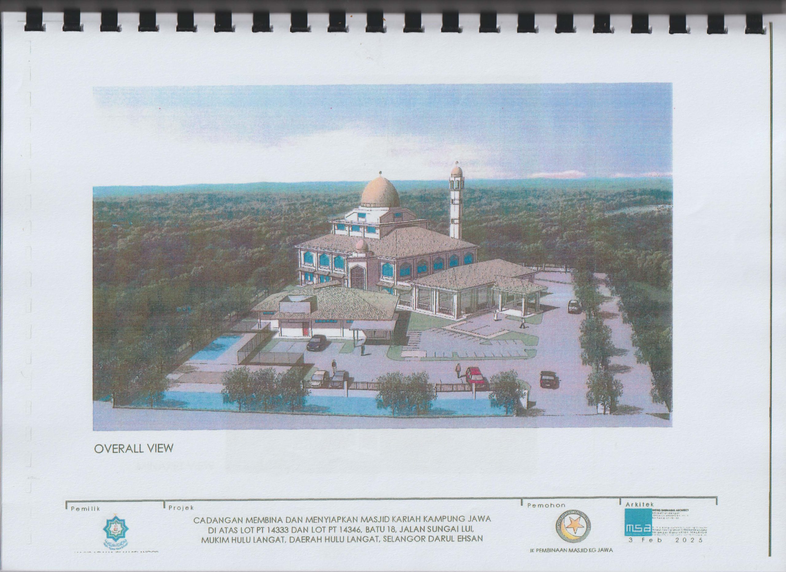 Sukacita dimaklumkan bahawa Jawatankuasa Teknikal JAIS dalam mesyuarat pada 4 Jun 2025 telah meluluskan pelan susun atur pembinaan masjid tanpa sebarang pindaan. Alhamdulillah, ini adalah satu langkah besar ke arah merealisasikan impian kita.