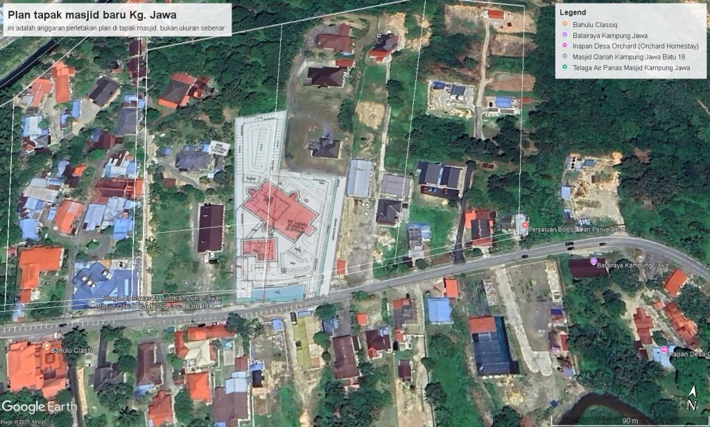 Ini adalah anggaran perletakan plan di tapak masjid. bukan ukuran sebenar